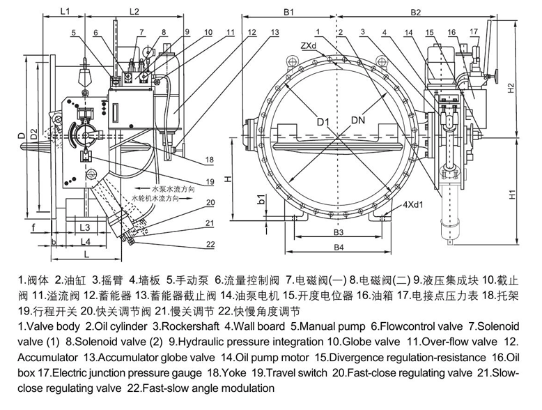 蓄能器型液控緩閉止回蝶閥主要用于水電站、供水泵房及電力、石油、化工、冶金、礦山等行業各類泵站安裝在水輪機進口或水泵出口管路,作截止、止回及調節流量用閥門有重錘型和蓄能器型可供選擇。