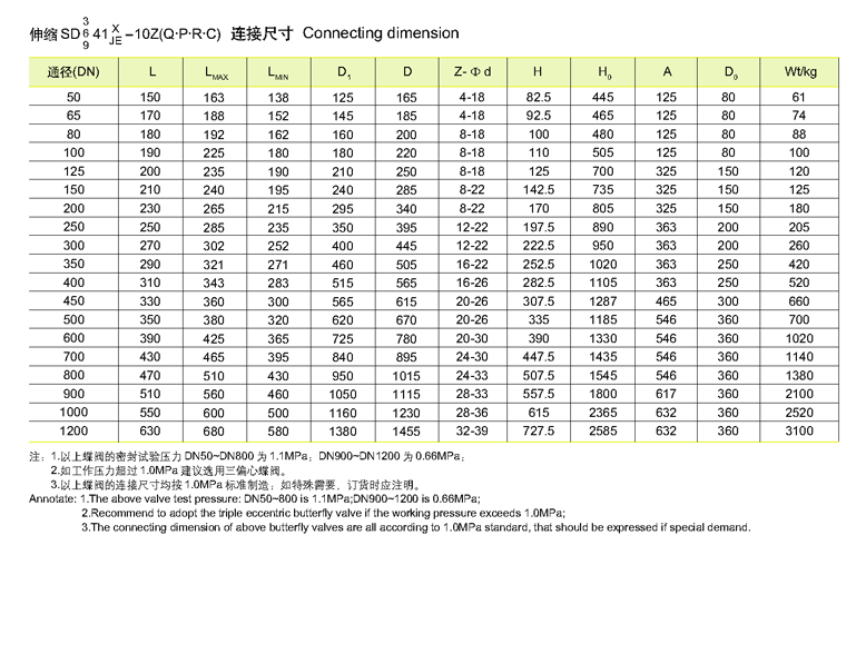 2.伸縮蝶閥出廠時結構長度為最小長度,安裝時,拉至安裝長度(即設計長度)。