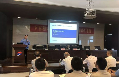 會上,公司核電事業部向各位領導進行工作匯報,分別介紹了公司基本情況、項目執行情況、質量管理情況、質量經驗反饋以及企業發展規劃。中廣核工程公司駐廠監造人員對2018年半年度質量監督情況作詳細匯報,并對風險防范提出了具體措施和建議。